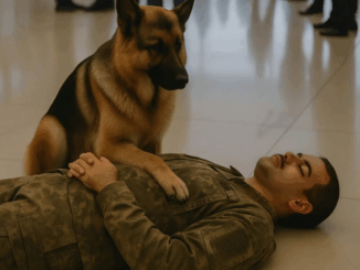 La gente all’aeroporto ha notato un soldato sdraiato sul pavimento freddo, con un pastore tedesco seduto accanto a lui, che abbaiava ai passanti: la folla è rimasta inorridita quando ha capito il motivo dello strano comportamento del cane