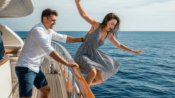Olivier era in piedi dietro di lei e per un secondo il mondo sembrò fermarsi. Poi, con un solo movimento, tutto cambiò. L’urlo di Casie squarciò l’aria. Il suo corpo cadde violentemente in acqua. Olivier fece un passo indietro. L’oceano inghiottì sua moglie in un silenzio assoluto. Gettò freddamente la sciarpa in acqua. “Addio, Casie”, sussurrò prima di tornare da solo sul ponte. Le onde si infrangevano dolcemente contro lo scafo della nave, ignorando il silenzio denso che scendeva sul ponte.