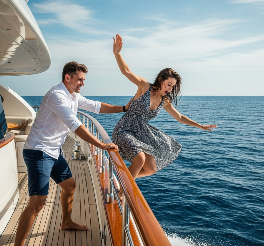 Olivier rimase immobile, con lo sguardo fisso sul punto in cui era scomparsa. Il suo grido era stato solo un’eco fugace, soffocato dal fragore del mare e dell’abisso intorno a lui. Non lanciò una palla, non chiamò aiuto, non pianse. Tirò fuori il telefono, fece un respiro profondo e compose un numero. “Sono il capitano Olivier”, disse con voce tremante. “Mia moglie”. Scivolò, cadde di bordo, lasciò che la sua voce si incrinasse e cadde in ginocchio, aggrappandosi al bordo della barca. Non ci furono lacrime, solo un silenzio contenuto, un gesto calcolato e il leggero ticchettio del suo orologio di lusso.