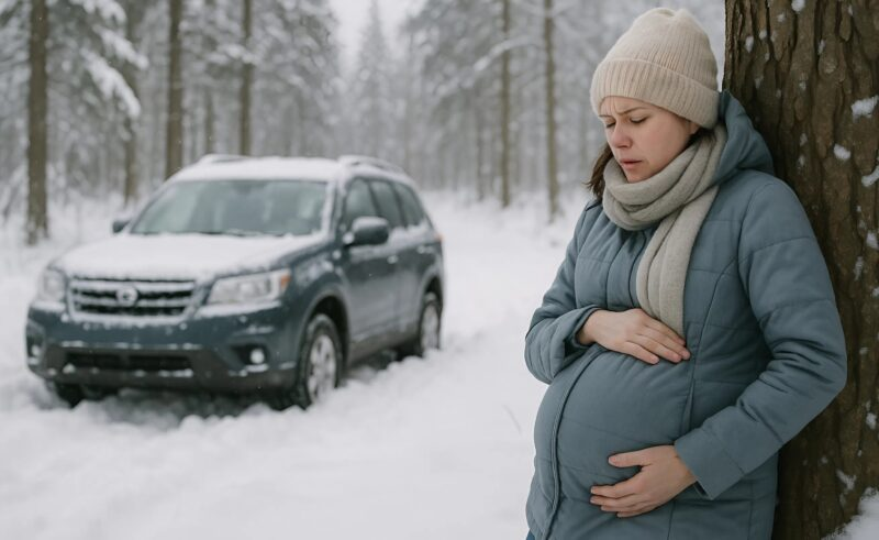 Mary capì: se fosse rimasta in macchina, si sarebbe bloccata. Il suo telefono non aveva campo. Disperata, uscì, sperando che qualche autista o una squadra di soccorso passasse di lì. Ma la strada forestale era deserta. Riusciva a malapena a stare in piedi, le doleva terribilmente la pancia e il bambino era irrequieto.