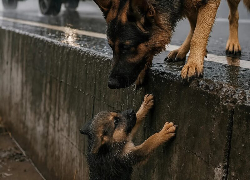 In autostrada ho notato una madre pastore tedesco che cercava disperatamente di aiutare il suo cucciolo ferito: ho raccolto con cura il cucciolo e l’ho portato sulla strada, ma l’attimo dopo è successo qualcosa di inaspettato