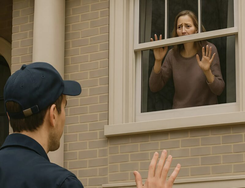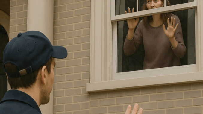 Alla finestra c’era una donna sulla quarantina. Lo fissava dritto negli occhi. Il corriere alzò istintivamente la mano, pensando che lo stesse semplicemente salutando. Ma i suoi gesti non erano un saluto. Batteva i palmi delle mani contro il vetro, agitava disperatamente le braccia e gridava qualcosa mentre premeva il viso contro il finestrino.