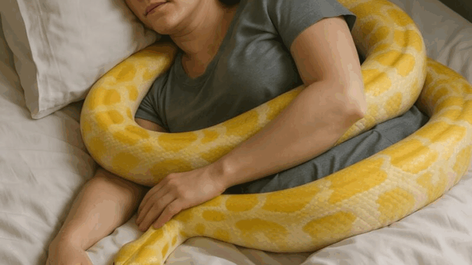 Le parole la colpirono come ghiaccio. Quella sera, la donna si sedette sul bordo del letto e guardò Safran scivolare lentamente sul lenzuolo. A un certo punto, il serpente giaceva esattamente come in quella foto: avvolto in un anello attorno a una donna addormentata – solo che questa volta la donna non dormiva.