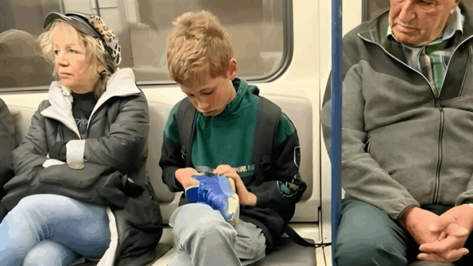 Alla fermata successiva, le porte si aprirono e un bambino di circa dieci anni salì in carrozza. Sembrava fosse scappato da scuola: capelli spettinati, pantaloncini stropicciati, una scarpa da ginnastica consumata in mano. Ma la cosa più importante era che era scalzo. Su un piede indossava un calzino sottile a righe. Si sedette su un sedile vuoto tra due passeggeri e cercò di non attirare l’attenzione.