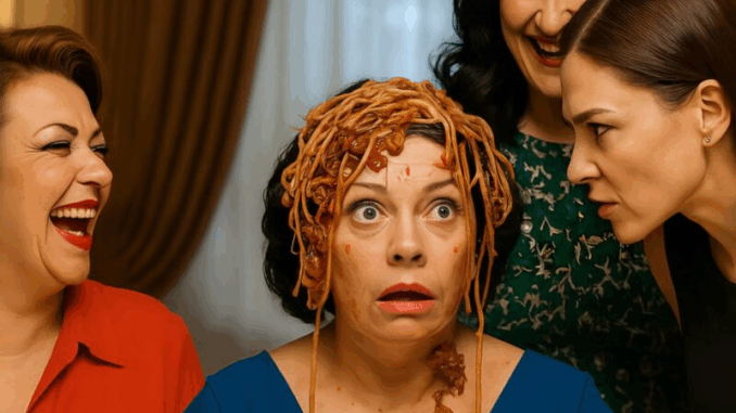 Dopo aver sentito quello che dicevano, tornai in soggiorno, afferrai il piatto di spaghetti e lo rovesciai con tutta la forza sulla testa di mia suocera. Lei iniziò subito a piangere e le sue amiche risero ancora più forte.