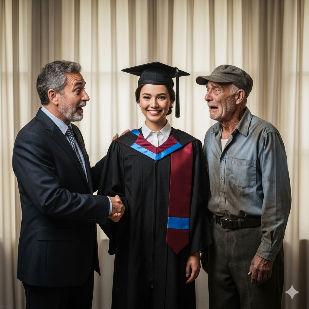 Il silenzio riempì la stanza. Per un attimo, i titoli, i diplomi, le lauree… tutto svanì. Ciò che stava al centro non ero io, ma l’uomo che mi aveva portato, non sulle sue spalle, ma sul suo sacrificio.