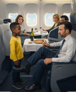 Tra loro c’era Marcus, un giovane ragazzo di colore, che camminava con sicurezza lungo il corridoio. Era il suo primo volo a lungo raggio da solo, ed era emozionato. Il suo biglietto riportava il numero 2A, un ambito posto in prima classe. Aveva pensato a quel momento per giorni, immaginandosi a rilassarsi nel lusso, proprio come gli adulti sulle riviste patinate delle compagnie aeree.