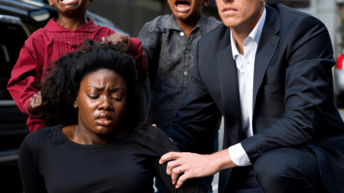 Sul marciapiede, una giovane donna barcollava in avanti, stringendo al petto una borsa di tela strappata come se fosse la sua ultima ancora. Si chiamava Maya Thompson , trentadue anni, senza casa, e lottava con ogni grammo di forza per andare avanti, per il bene dei suoi gemelli di due anni, Eli e Grace , che le si aggrappavano alle mani.