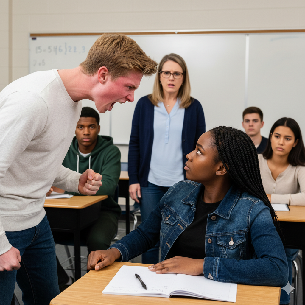 Quando raggiunse la sua scrivania, i suoi occhi bruciavano di rabbia. “Qual è il tuo problema, eh? Pensi di essere migliore di noi? Di’ qualcosa, ragazza del ghetto!”