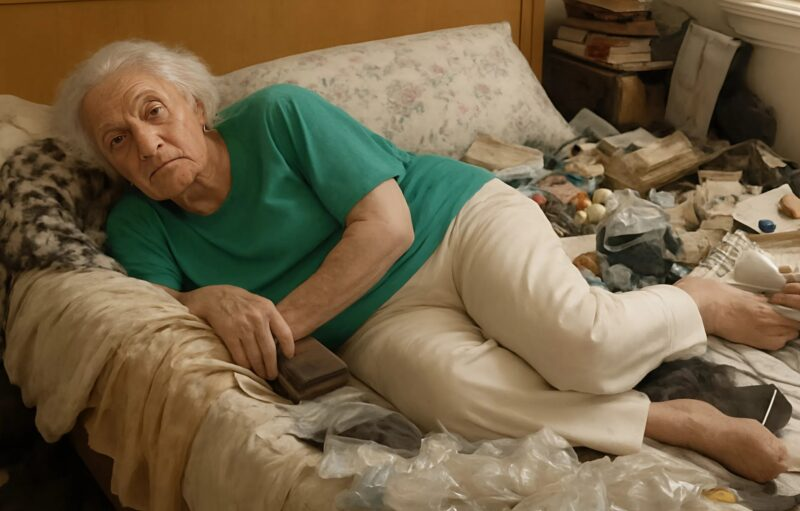La mamma era sdraiata a letto, coperta di vecchi stracci. Indossava una maglietta verde sbiadita che un tempo le stava bene, ma ora le pendeva come un sacco. Il suo viso era diventato scarno, i suoi capelli erano completamente grigi, la sua pelle era invecchiata come se le fossero stati aggiunti dieci anni in un solo giorno. Intorno al letto regnava il caos: sacchetti di plastica, vestiti sporchi, scatole di medicinali vuote, carte, spazzatura. L’odore era soffocante: un misto di muffa, medicine e una stanza trascurata da tempo.