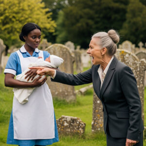 Lì, inginocchiata davanti alla tomba di William, c’era una giovane donna di colore con una sbiadita uniforme da cameriera blu. Il suo grembiule era sgualcito. Le sue spalle tremavano. Tra le sue braccia, avvolto in una morbida coperta bianca, c’era un neonato, forse di pochi mesi.