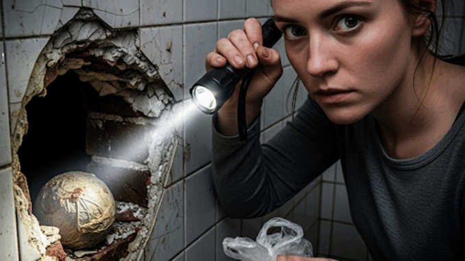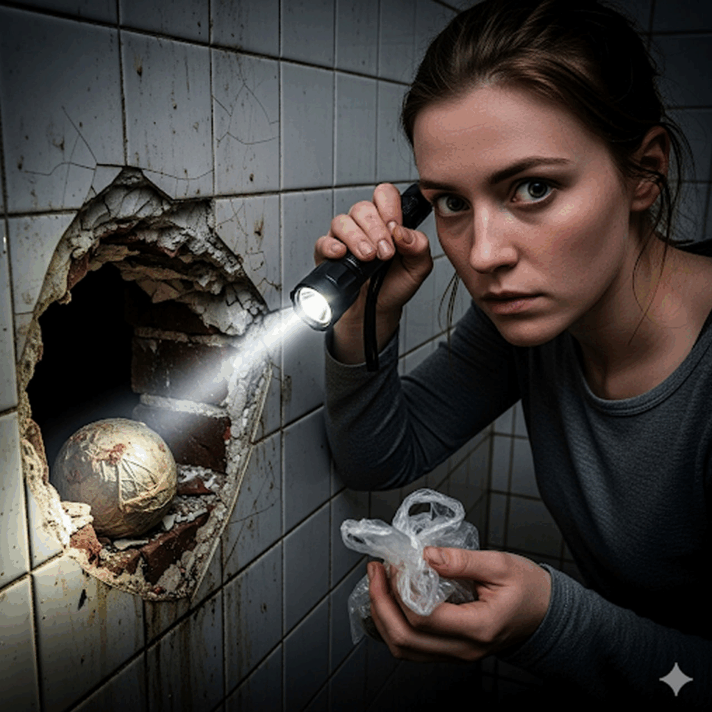 Ho toccato una piastrella. Ha oscillato. Un movimento e un pezzo è caduto a terra, rivelando un buco nero nel muro. Mi sono bloccato, con il cuore che mi batteva forte. Dentro c’era qualcosa di nascosto. Ho allungato la mano e ho tirato fuori un sacchetto di plastica. Poi un altro.