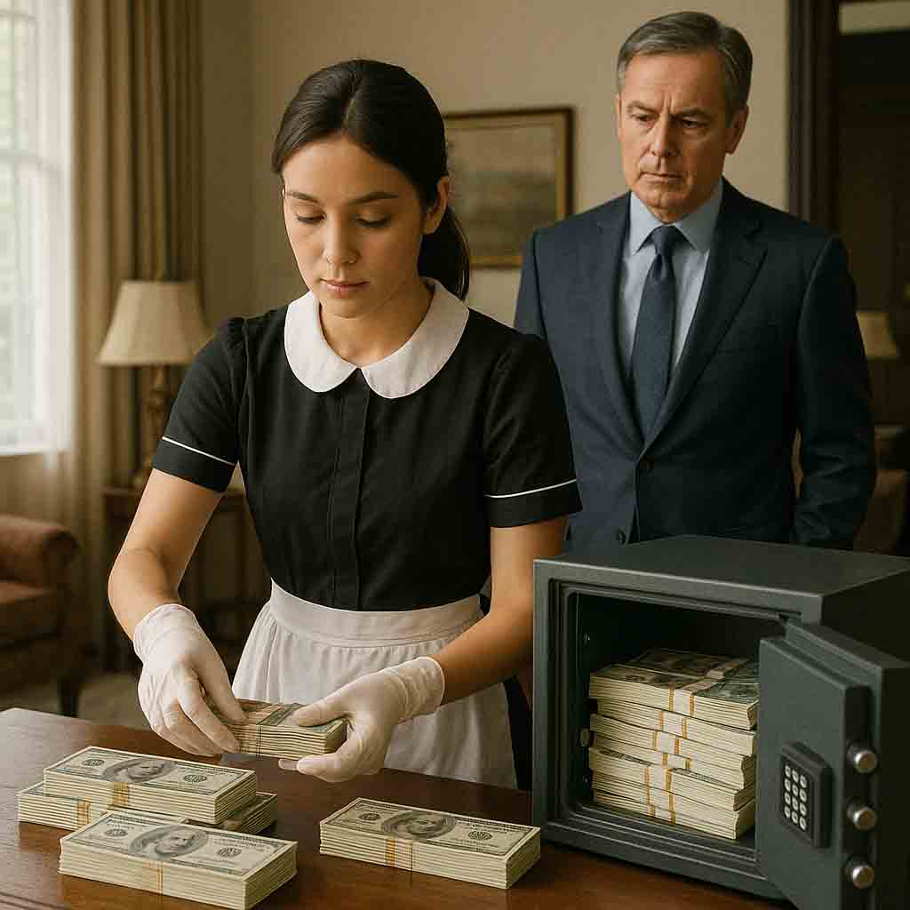 Clara entrò nello studio con un panno per spolverare. Si bloccò quando vide la cassaforte aperta. Per un attimo, si guardò intorno nervosamente. Il cuore di Arthur accelerò. ” Ecco che arriva”, pensò. “Nessuno può resistere alla tentazione quando è così facile”.