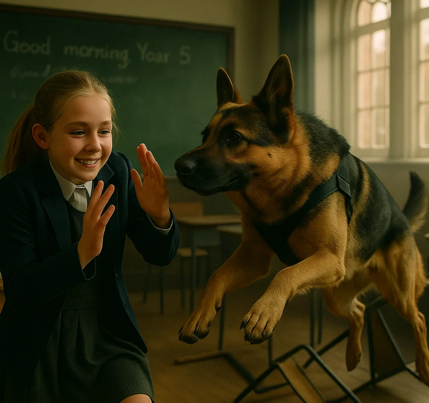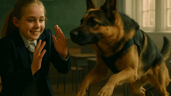 Il pastore tedesco si lanciò contro una ragazza in terza fila, abbaiando forte. Era una studentessa modesta e silenziosa di nome Marie, che di solito sedeva nelle ultime file. Quel giorno, era in piedi accanto alle sue amiche, con un quaderno stretto al petto. A prima vista, sembrava una ragazza normale e timida.
