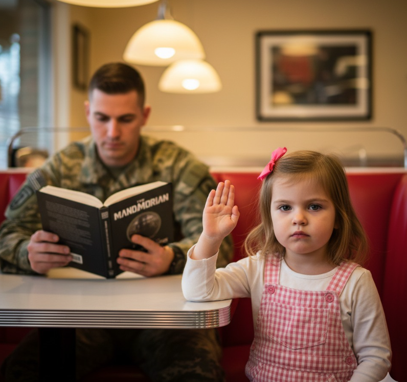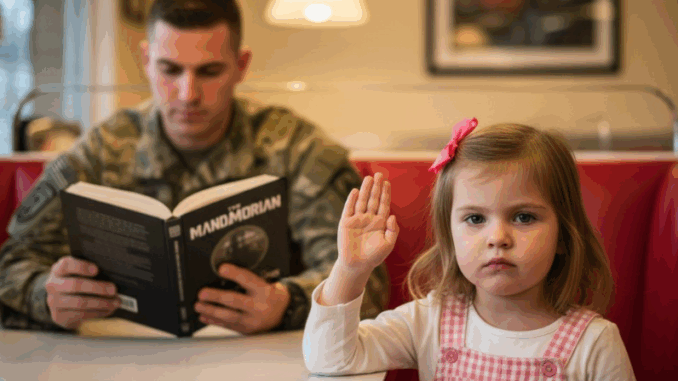 Le famiglie si sistemarono nei loro séparé, i camionisti sorseggiavano caffè fumante e un vecchio jukebox ronzava dolcemente in un angolo. Il sergente Daniel Whitmore, reduce da una missione, era solo al bar, a mescolare distrattamente il suo caffè nero. I suoi occhi acuti, allenati a notare dettagli che altri non notavano, si posarono su una piccola figura dall’altra parte della stanza.