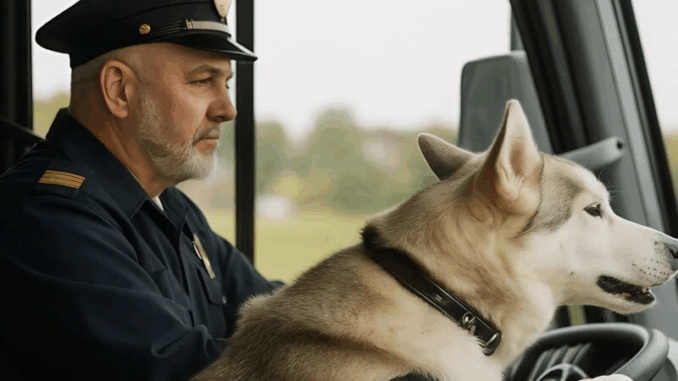 Le orecchie dell’husky si alzarono di scatto. Il suo sguardo si fece teso, come se avesse captato un segnale debole ma allarmante. Dapprima, il cane uggiolò piano, poi all’improvviso balzò in piedi e corse verso l’autista dell’autobus.