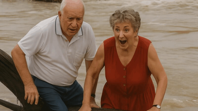 La coppia rimase lì seduta, tremante per la paura e il freddo, ma viva. L’elefante si mosse con sicurezza verso la riva, fendendo le acque impetuose con il suo corpo imponente. A ogni passo, per loro diventava come un’isola di salvezza.