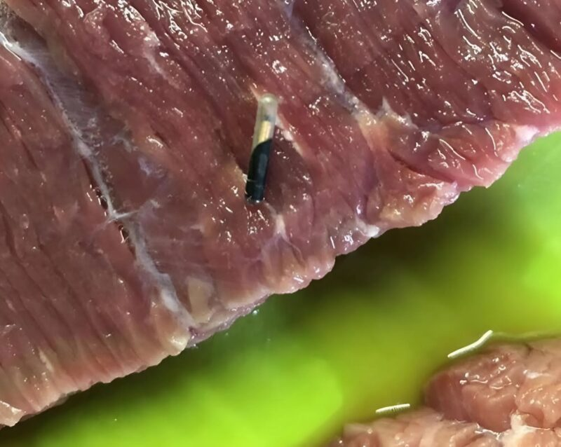 Ma normalmente, dovrebbero essere rimossi prima che la carne venga venduta. Come un pezzo di un simile dispositivo sia finito nella carne che ho comprato rimane un mistero.
