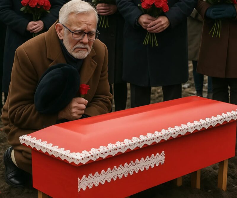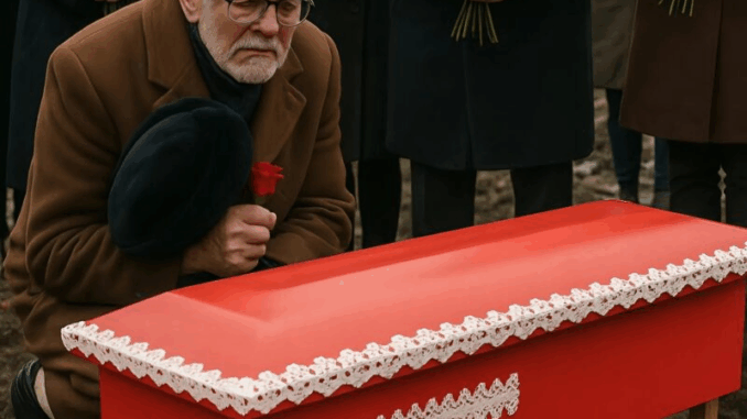 Il nonno era in piedi sul bordo della tomba, con il cappello e una rosa solitaria tra le mani. Il suo volto era segnato da un dolore mai visto prima. Le sue spalle tremavano, le sue labbra sussurravano parole silenziose. Sembrava più piccolo, come se il peso della perdita lo avesse piegato per sempre. Le persone intorno a lui abbassavano gli occhi, incapaci di guardare la sua sofferenza.