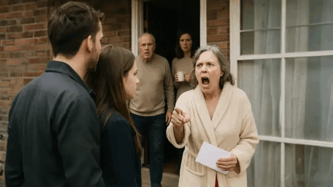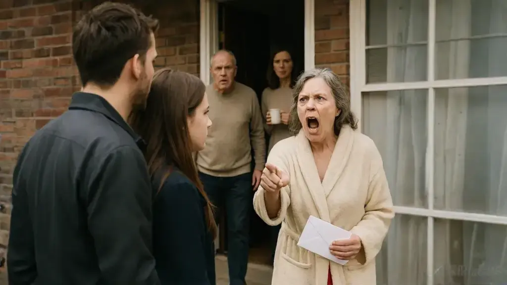 Era in piedi sulla mia veranda, con indosso lo stesso accappatoio morbido, e teneva in mano la lettera di sfratto, ormai spiegazzata e umida, come se l’avesse strizzata per due ore di fila. Aprii la porta, ma non la invitai a entrare.