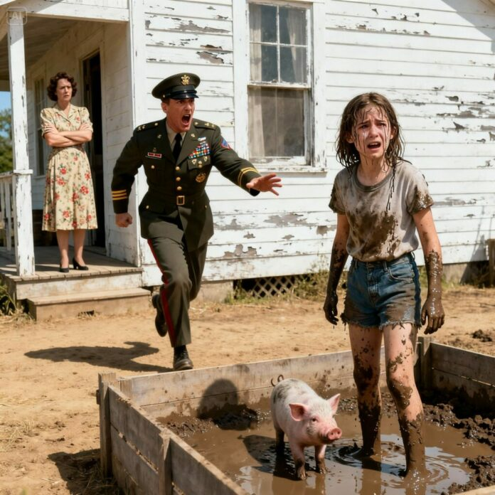 Nel porcile , scalza e coperta di fango, c’era Emily . Aveva i capelli arruffati, il viso pallido, i vestiti strappati e troppo sottili per l’aria fredda. Le sue piccole mani tremavano mentre raccoglieva il mangime nella mangiatoia.