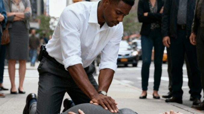 Il suo respiro si stabilizzò quel tanto che bastava. Marcus la fece sdraiare su un fianco per alleviare la pressione e controllò delicatamente che non ci fosse sanguinamento. Chiamò il 911 continuando a tenerla calma. La gente si radunò, ma nessuno si fece avanti. Solo Marcus rimase, mani ferme, voce calma, cuore che batteva forte, ma controllato.