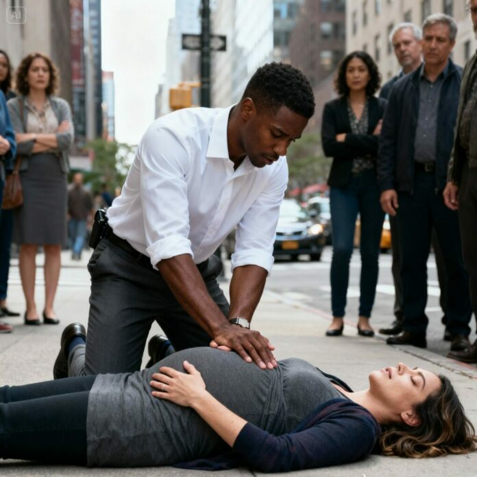 Marcus si inginocchiò immediatamente accanto a lei. Non esitò. Faceva volontariato in una clinica gratuita della comunità da anni; le emergenze non lo spaventavano. “Sono qui”, la rassicurò. “Resta con me, ok? Concentrati solo sul respiro. Lento. Dentro… ed esci…”