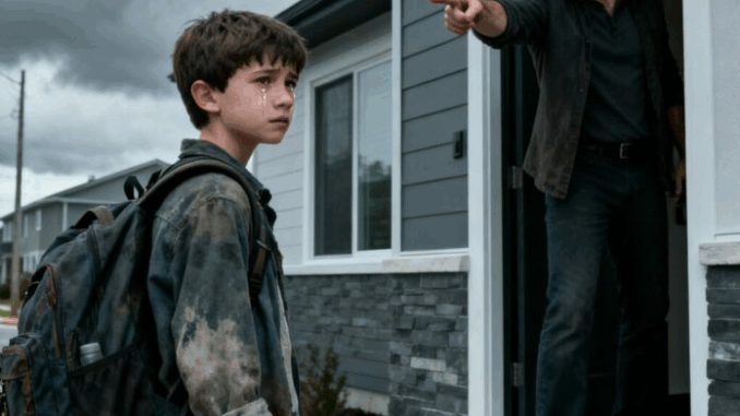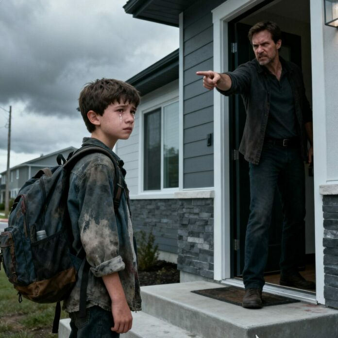 Raffigurava un bambino in piedi fuori da una casa sotto la pioggia… una porta chiusa in faccia.