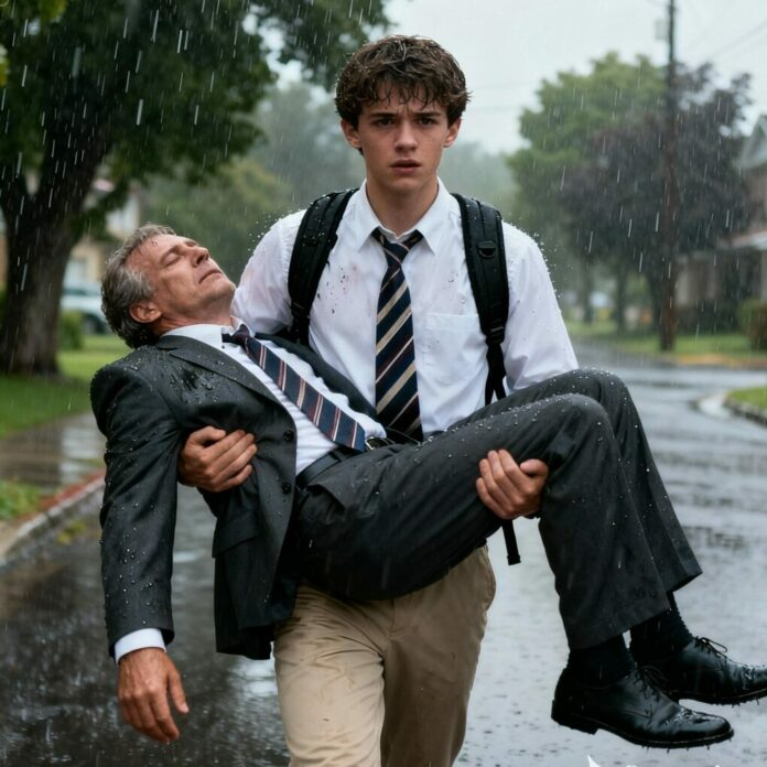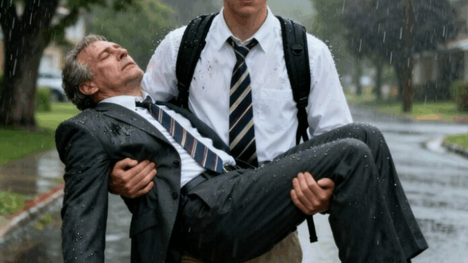 Mentre svoltava sulla strada principale, i suoi occhi colsero un movimento improvviso: un uomo in abito grigio scuro che crollava vicino alla fermata dell’autobus. All’inizio, Ethan pensò che fosse solo inciampato, ma avvicinandosi, sentì una stretta allo stomaco. L’uomo non si muoveva. La sua valigetta era aperta accanto a lui, con i documenti che svolazzavano al vento.