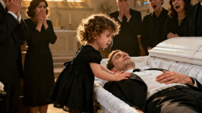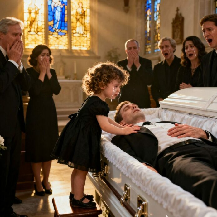 Quando il pastore iniziò l’elogio funebre, Ella scivolò giù dal suo posto, con le sue scarpe di vernice che ticchettavano sul pavimento di marmo. La folla si immobilizzò. Lei salì su uno sgabello accanto alla bara, allungando la mano per toccare la mano del padre.