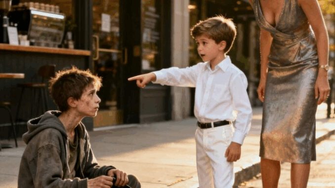 “Ethan, non indicare”, sussurrò, cercando di trascinarlo con sé. “Dai, tesoro.”
