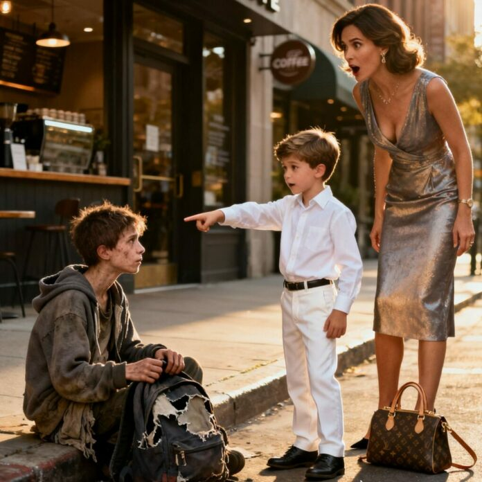 Dall’altra parte della strada, vicino all’angolo di una panetteria, sedeva un ragazzino rannicchiato sotto un ombrello rotto. Aveva i vestiti fradici, i capelli arruffati e arruffati. Stava mangiando da un involucro di panino scartato. Nonostante la sporcizia, c’era qualcosa di inquietantemente familiare in lui: gli stessi profondi occhi castani, lo stesso mento con fossette, la stessa delicata curva della bocca.