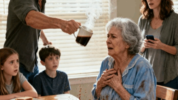 Mabel sentì il bruciore del caffè, ma il bruciore più profondo proveniva dal loro silenzio. “Penso che andrò di sopra”, sussurrò, alzandosi lentamente sulle ginocchia tremanti. Nessuno la fermò.