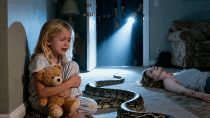 Poi videro il pitone: il suo corpo massiccio e muscoloso era steso sul pavimento del corridoio. Travis Cole era appoggiato per metà al muro, con un braccio gravemente morso. Il suo polso era debole, ma vivo. Emma era seduta sul pavimento lì vicino, abbracciata forte, con le lacrime che le rigavano le guance.