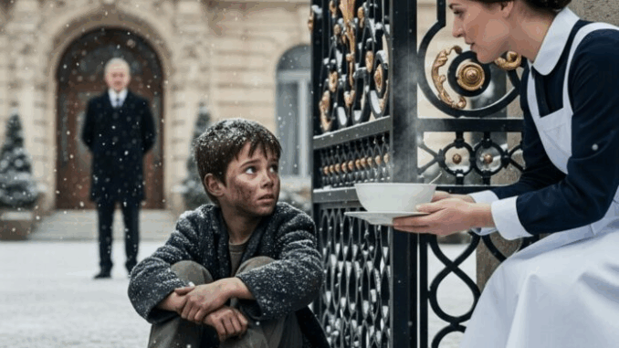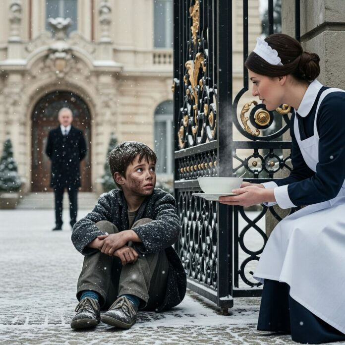 Mentre lavorava, notò un movimento vicino al cancello in ferro battuto. Un bambino – piccolo, magro, scalzo – era in piedi, aggrappato alle sbarre. Aveva i vestiti sporchi, il viso pallido, le braccia strette intorno al corpo. Dimostrava forse sei o sette anni. Il tipo di bambino che avrebbe dovuto essere a scuola, non a tremare per il freddo.