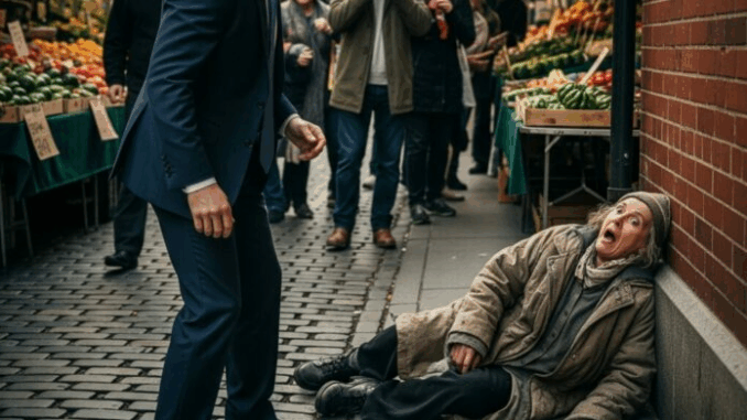 Quando la mano tremante della donna gli sfiorò accidentalmente la gamba, Adrian indietreggiò. Senza pensarci, la spinse via con un piede. Le monete si sparsero sul marciapiede mentre lei cadeva all’indietro contro il muro. Le persone lì vicino sussultarono.