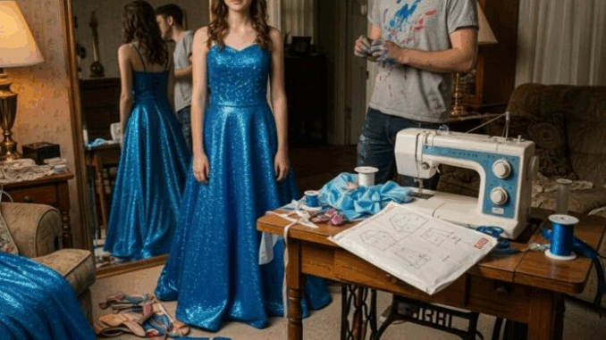 Quando arrivò la settimana del ballo, Jake era esausto ma orgoglioso. L’abito scintillava alla luce: un abito blu morbido e fluente che sembrava uscito da una fiaba.