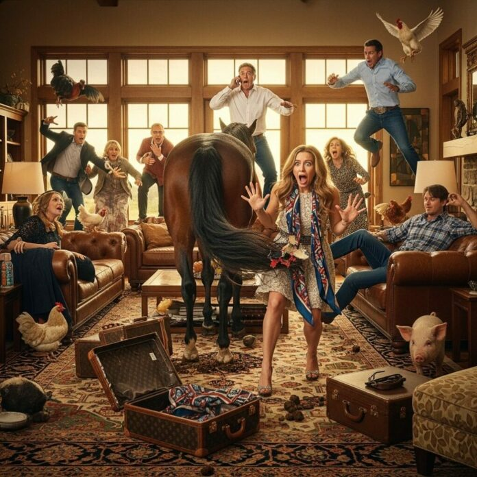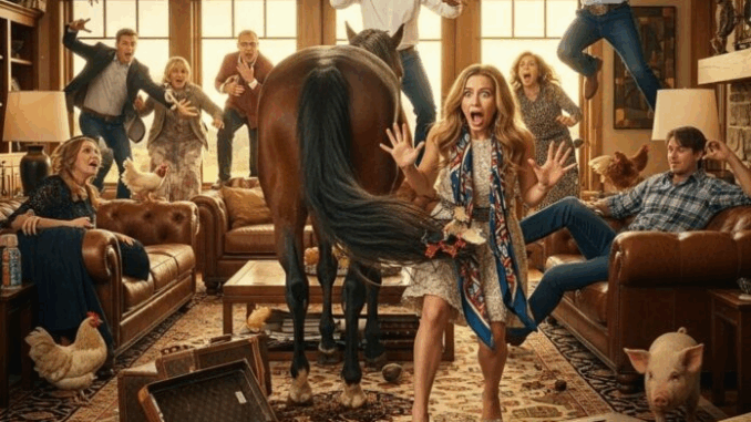 Attraverso il feed, Gail vide Scout, il suo stallone più anziano, in piedi fiero nell’ingresso, con la coda che svolazzava come una bandiera. Dietro di lui, Bella era entrata in cucina, masticando soddisfatta la sciarpa firmata di Sabrina. Un tuono, sempre teatrale, fece cadere un vaso che era costato una fortuna.