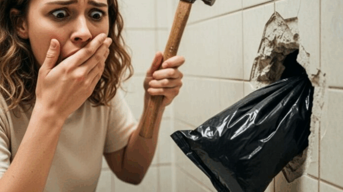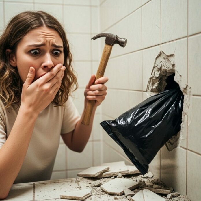 Il primo colpo ha lasciato una piccola crepa. Il secondo ha fatto volare un pezzo. Il mio battito cardiaco ha accelerato. Al terzo, una sezione di piastrella si è staccata completamente, rivelando uno spazio vuoto. Ho puntato la torcia del mio telefono all’interno e sono rimasto bloccato.
