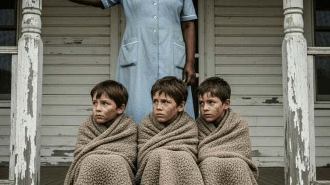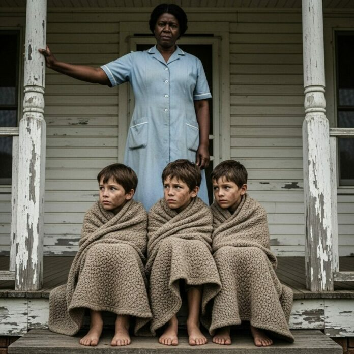 Una piovosa mattina di ottobre, Evelyn aprì la porta a soffietto e trovò tre ragazzi rannicchiati sotto una coperta a brandelli, vicino ai bidoni della spazzatura. Erano fradici, scalzi e tremanti. Il più grande, Caleb, aveva circa undici anni, un dente rotto e le nocche ammaccate, segno di troppe liti. Drew, che aveva forse nove anni, osservava tutto con sguardo diffidente. Il più piccolo, Jamie, di soli sei anni, si succhiava ancora il pollice e non aveva detto una parola.