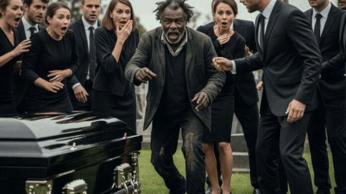 Il grido squarciò il silenzio solenne del cimitero. I presenti rimasero senza fiato quando un uomo trasandato si fece strada verso la prima fila. Il suo cappotto era strappato, le scarpe spaiate e il suo volto portava i segni degli anni trascorsi in strada. Eppure la sua voce risuonava con sorprendente convinzione.