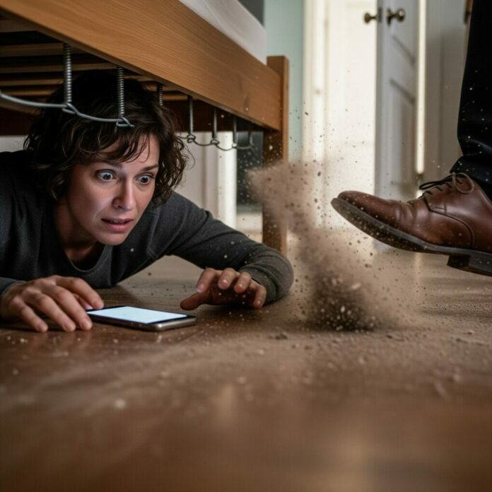 Una volta dentro, mi diressi silenziosamente verso la mia camera da letto e mi infilai sotto il letto, tirando il piumone abbastanza in basso da nascondermi. Il mio cuore batteva così forte che mi echeggiava nelle orecchie. Le ore passavano lente. La polvere mi solleticava la gola. Il telefono era come un mattone caldo in tasca e pregavo che non vibrasse.