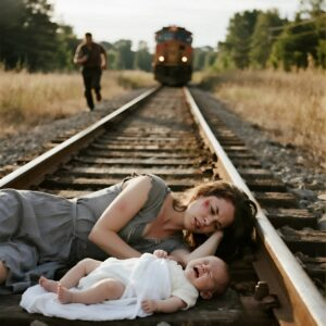 Una giovane donna era legata ai binari , con i polsi legati con una spessa corda e le caviglie incatenate alla rotaia d’acciaio. Il vestito strappato le aderiva alla pelle ammaccata e i lunghi capelli castani erano ricoperti di terra e sudore. Ma ciò che fece rivoltare lo stomaco a Noah fu il piccolo bambino che stringeva al petto, avvolto in una coperta lacera, che piangeva debolmente.