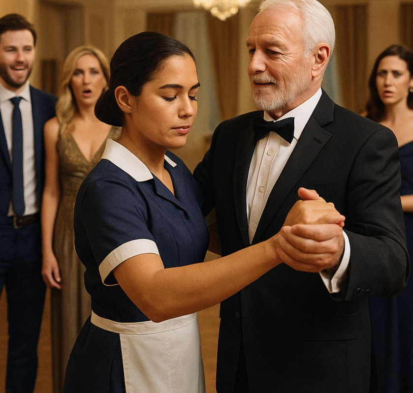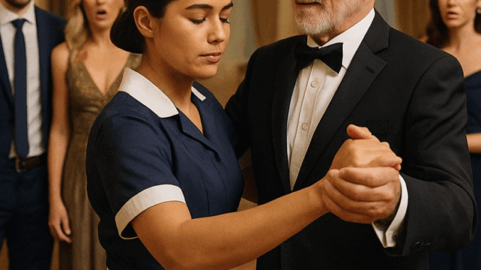Maria posò una mano sulla spalla del milionario, l’altra nella sua, e si mosse con un’eleganza inaspettata. I suoi passi erano decisi, fluidi, perfettamente sincronizzati con il ritmo. L’orchestra suonava un valzer classico e il suono dei violini sembrava avvolgerli come in un incantesimo.