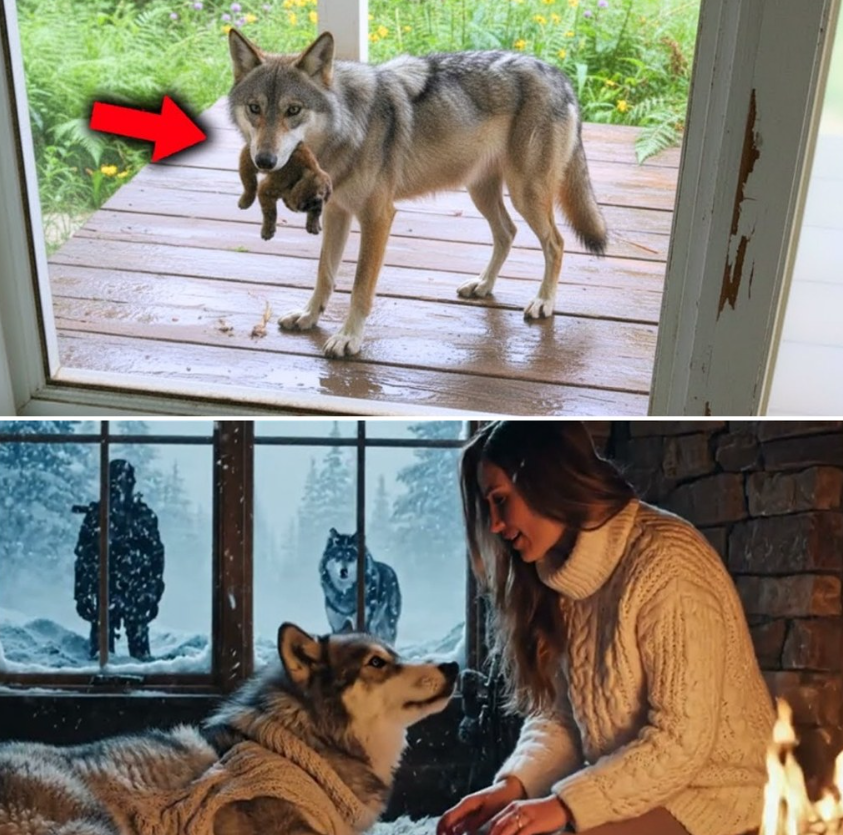 Una donna diede del cibo a un lupo affamato. Tre giorni dopo, lo trovò sulla soglia di casa con una sorpresa. Pensava che la creatura selvaggia non sarebbe mai più tornata, ma ora, nell’immobilità della neve, impronte di zampe circondavano il suo portico, seguite da altre più piccole. Quando aprì la porta, lo stesso lupo era lì, con gli occhi che brillavano all’alba.