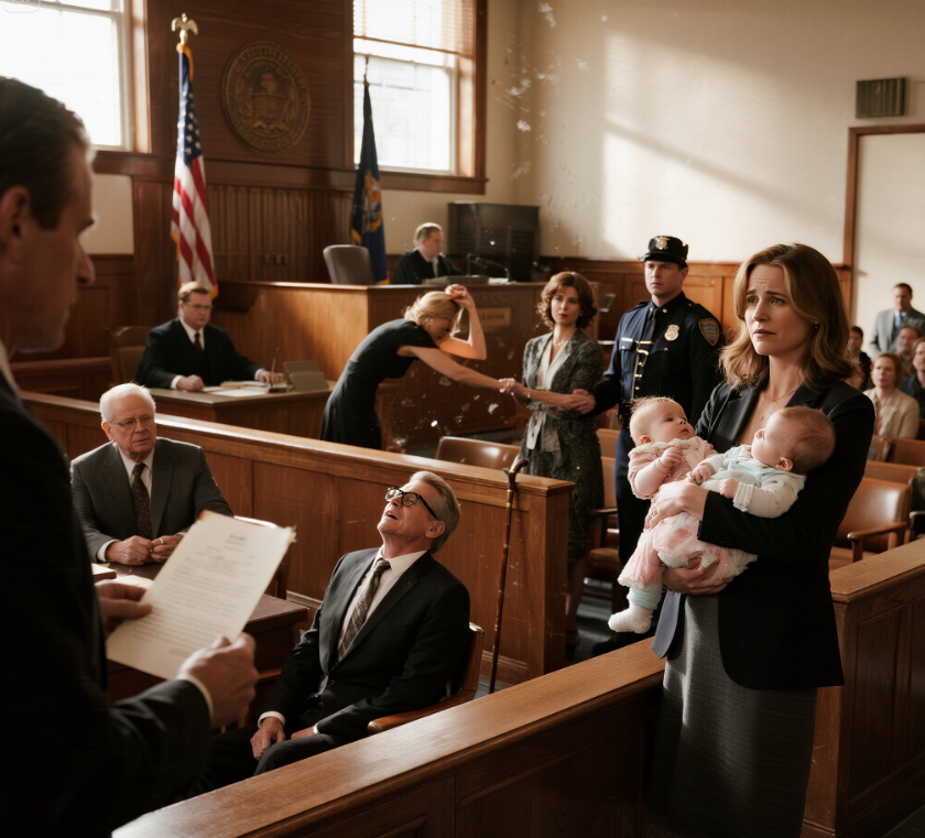 Moglie abbandonata con bambini irrompe in tribunale: l’amante sviene mentre il giudice legge il testamento finale…