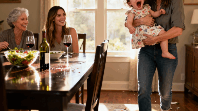 Ero seduta in silenzio accanto a mia figlia Emma, di tre anni, aiutandola a tagliare piccoli bocconi di cibo. Era stata così educata per tutta la sera, a dondolare le gambe sotto la sedia e a cercare di partecipare alla conversazione che nessuno si preoccupava di includerla.