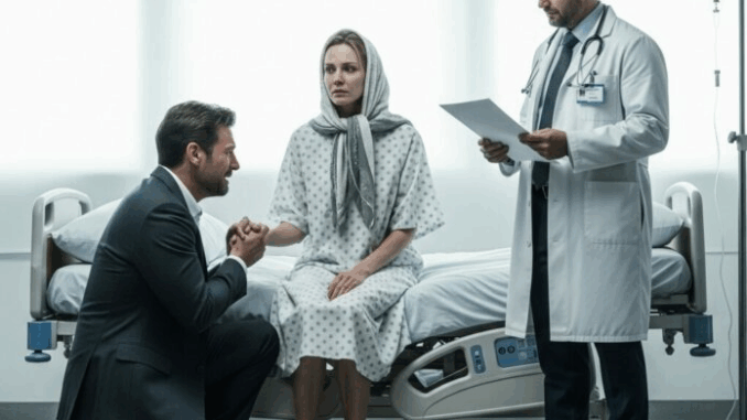 Immaginate quindi la mia sorpresa quando, due mesi dopo, sono entrato al St. Vincent’s Hospital per una visita di lavoro di routine e ho visto lei, la mia ex moglie, seduta in camice da ospedale, il corpo fragile, i capelli radi, il viso pallido come il gesso.