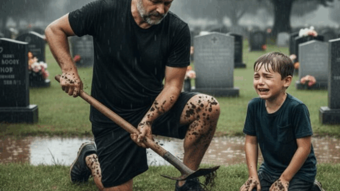 In una mattina nuvolosa, gli operai si radunarono al cimitero. L’escavatore ronzava, sollevando la terra finché non apparve la bara. Richard era in piedi, pallido, accanto al fratello Paul. Ethan, determinato, si rifiutava di muoversi dal fronte. Aveva i pugni serrati, lo sguardo fisso sulla bara.