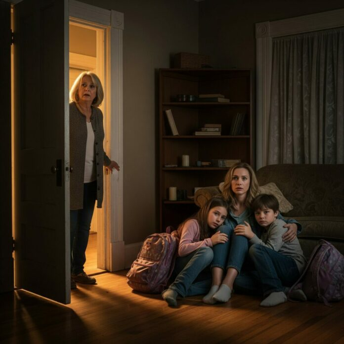 Susan esitò, poi si fece da parte. Pamela emerse lentamente dalle scale. Emma e Lucas si nascosero dietro le sue gambe.